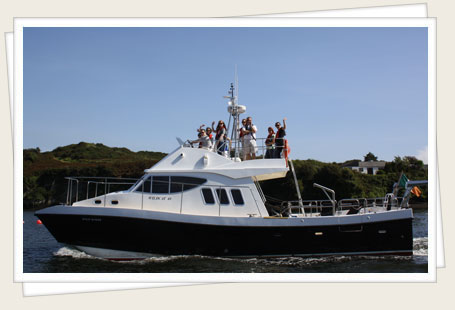 Our spacious cabin offers a comfortable seating area for twelve people with full heating to keep you warm on winter cruises. There is an onboard toilet for your convenience. Outside, the vast deck area allows for a comfortable twenty people, enabling you to sit and enjoy the wonderful scenery or you may wish to step up to the fly bridge for a panoramic view of the exquisite coastline. Fancy a dip in the fresh sea water? A warm shower and fresh towels will greet you back on board.